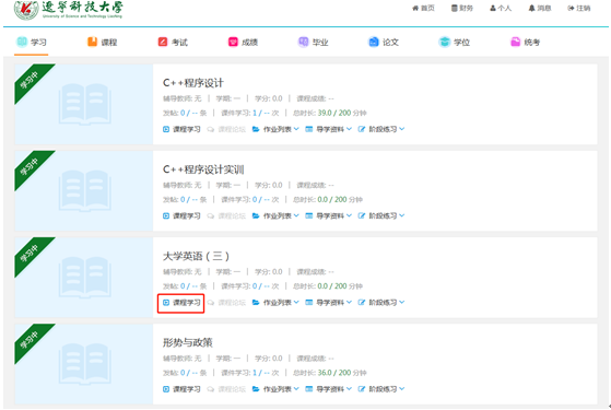 1、登錄后,進入主頁面,找到學習,然后選擇課程學習。