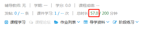 4、學習完成后,在主頁面會顯示學習時長。每科學習200分鐘,課件學習次數大于5次即可。