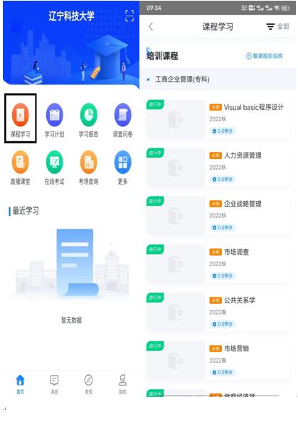 1、登錄后,進(jìn)入主頁面,找到學(xué)習(xí),然后選擇課程學(xué)習(xí)。