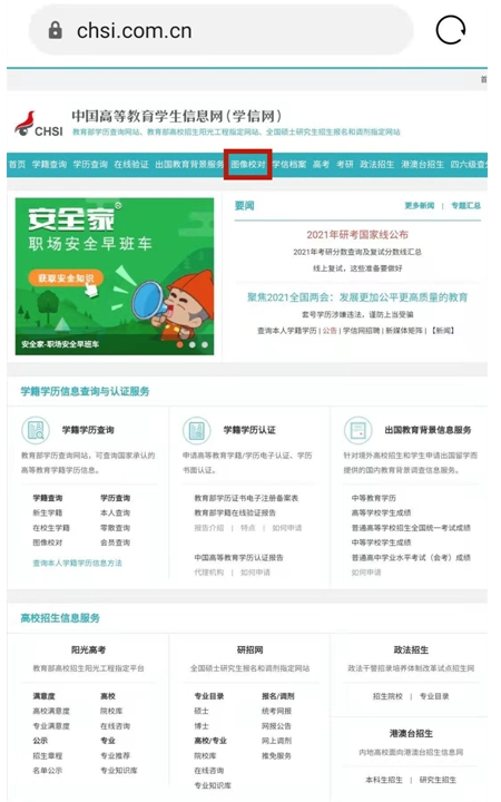 1、打開手機瀏覽器,登錄中國高等教育學生信息網(www.chsi.com.cn)